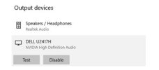 i have tryed disabling / enabling the speakers/headphones and DELLU2417H and the sound does come back on.